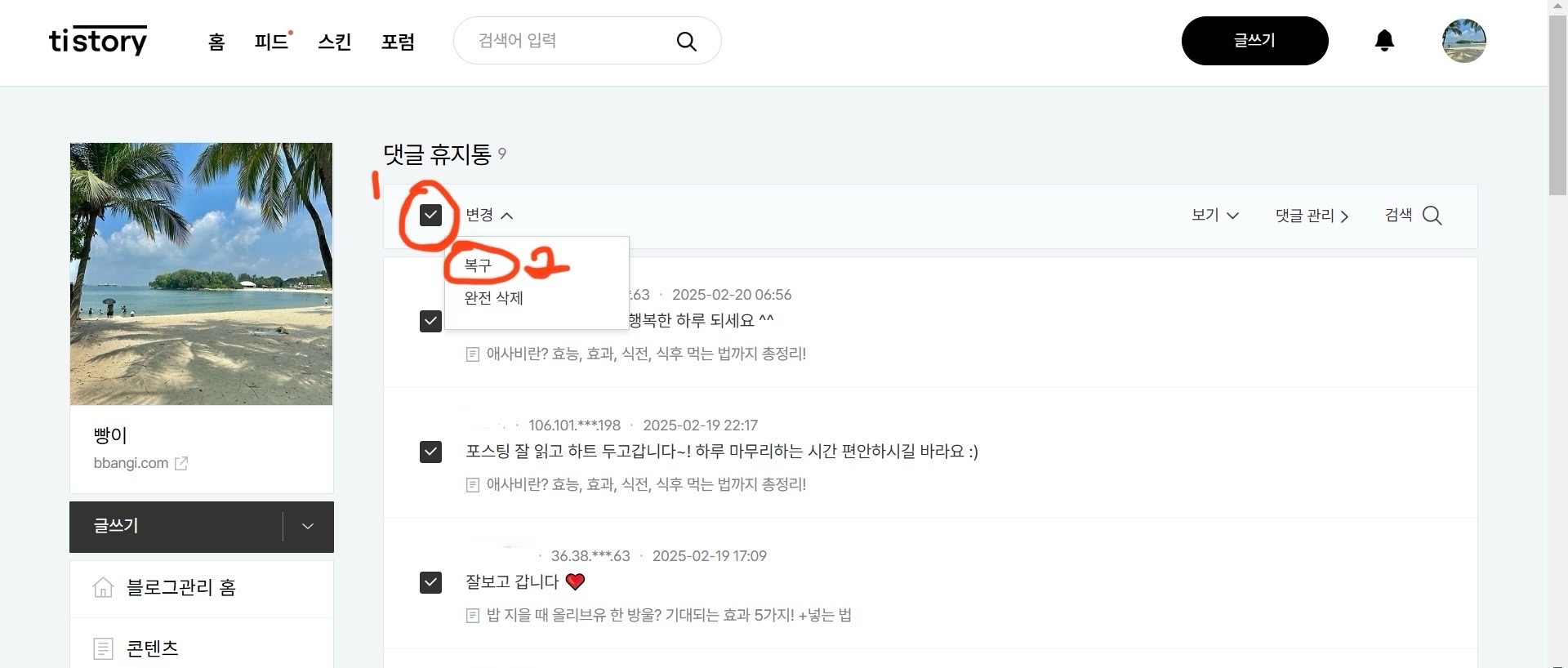 1. 티스토리 댓글 휴지통 확인하는 방법